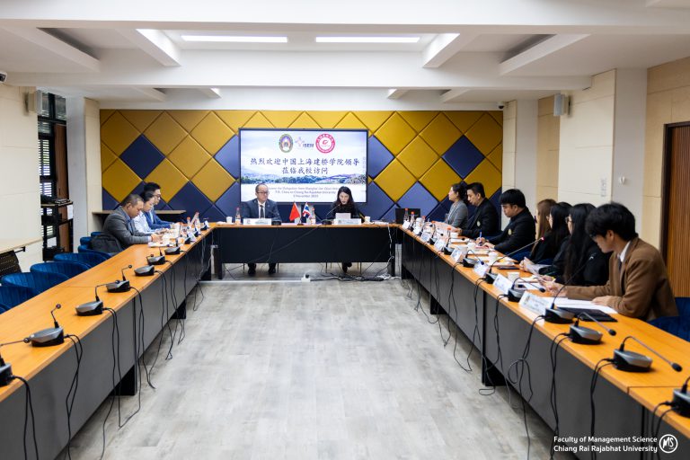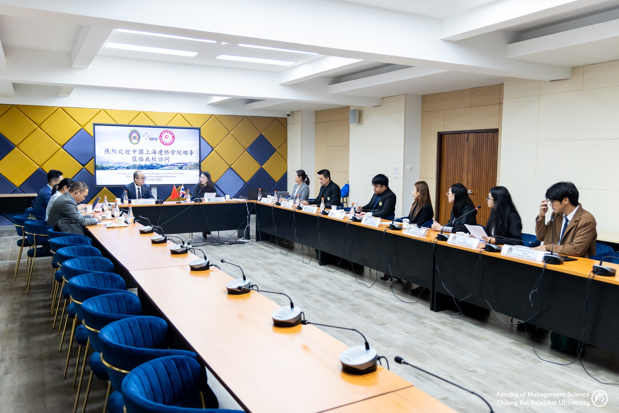 ศูนย์การศึกษานานาชาติ (ISEM) มหาวิทยาลัยราชภัฏเชียงราย ให้การต้อนรับ ศาสตราจารย์หลิว ลี่ฮวา (Prof. LIU LIHUA) ผู้ช่วยอธิการบดี พร้อมคณะผู้บริหารจาก Shanghai Jian Qiao University (上海建桥学院) มหานครเซี่ยงไฮ้ สาธารณรัฐประชาชนจีน ในการเดินทางมาเยือนเพื่อ หารือแนวทางความร่วมมือทางวิชาการ ระหว่างสองมหาวิทยาลัยอย่างเป็นกันเองและอบอุ่น